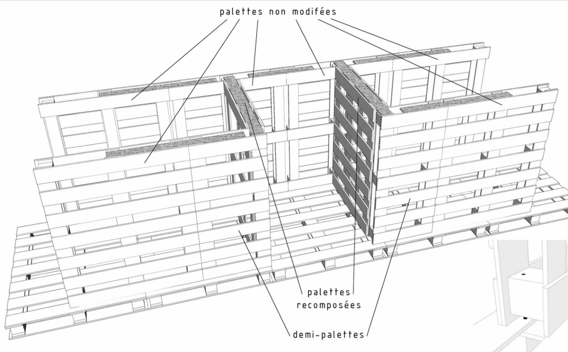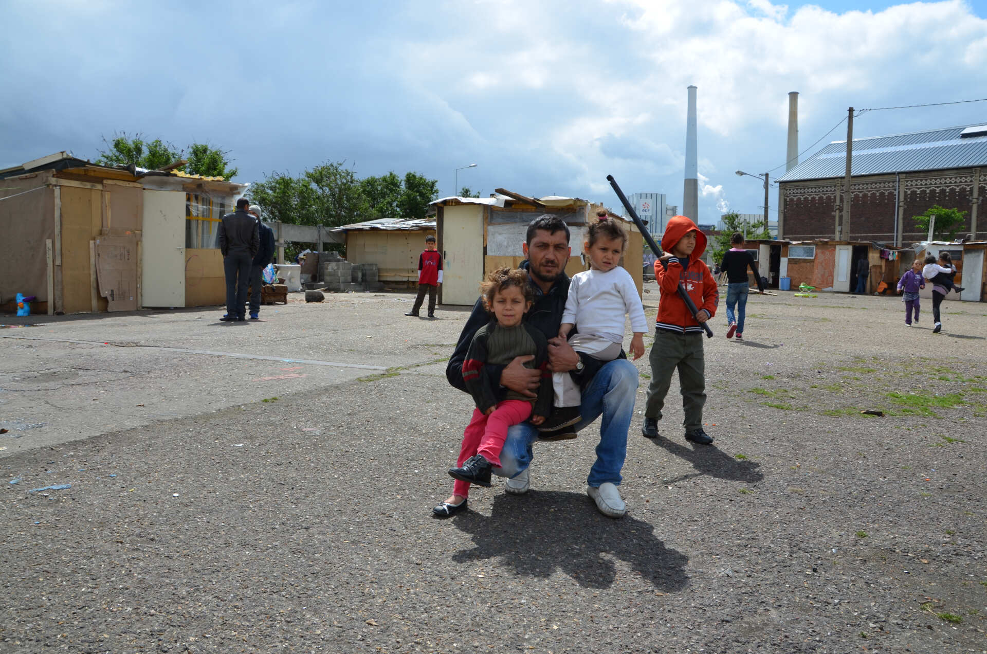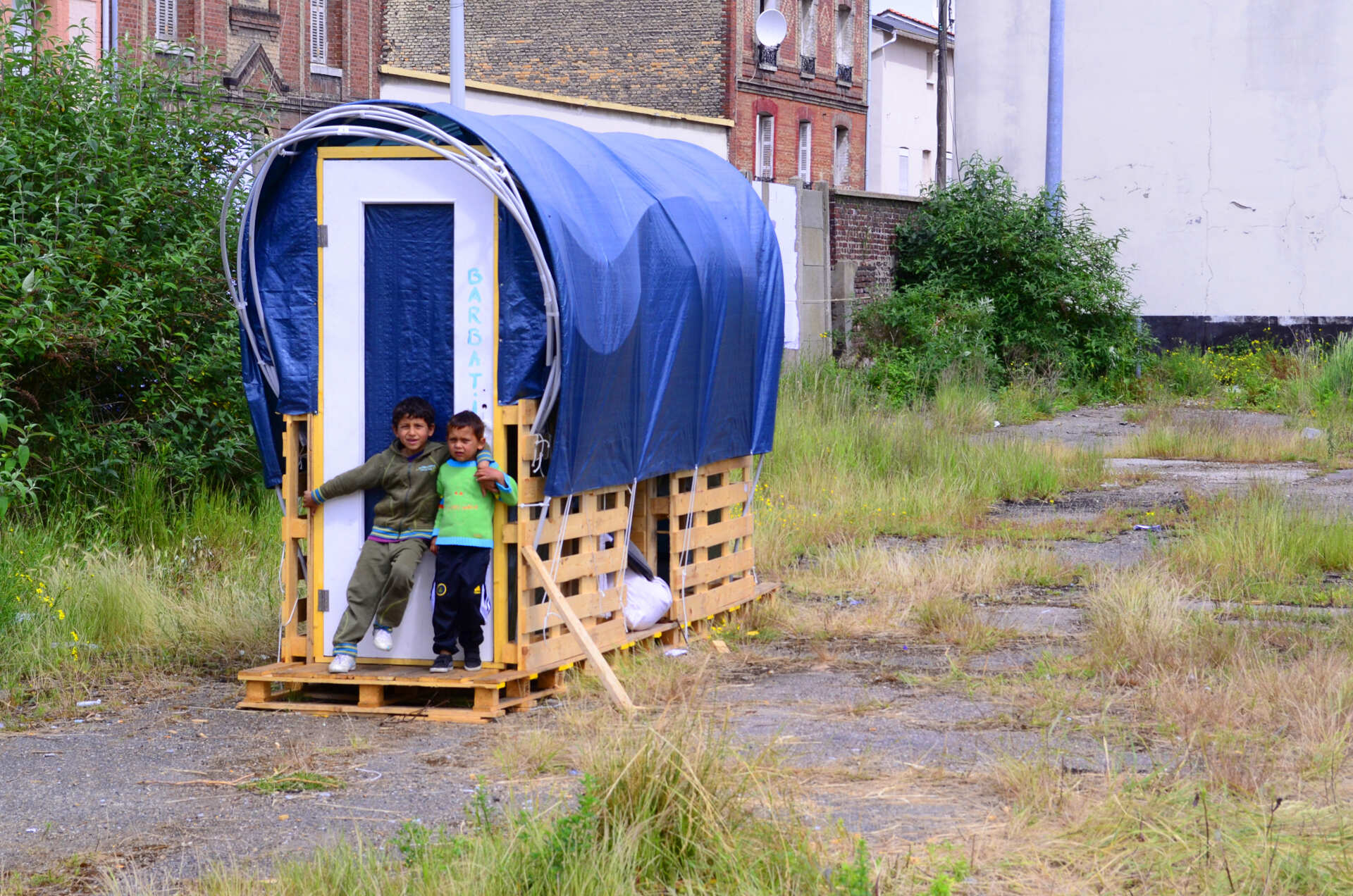 Ironie grinçante, par quelques mots et gestes, il explique qu'en Roumanie il travaillait dans une usine de palettes. Celles qu'il dépointe ici pour aménager et assainir la précarité sont-elles de celles qu'il a monté là-bas ? À l'autre bout de l'Europe ? Auquel cas le voyage de ces pièces de bois semble bien plus léger que celui des hommes.