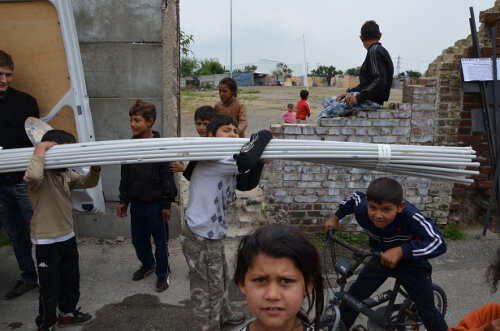 Lendemain de fête. Nous démontons notre tente avec l'aide de nos "voisins de camping". Nous chargeons les camions et entreposons une partie du matériel sur place, le laissant aux bons soins de Ioan.