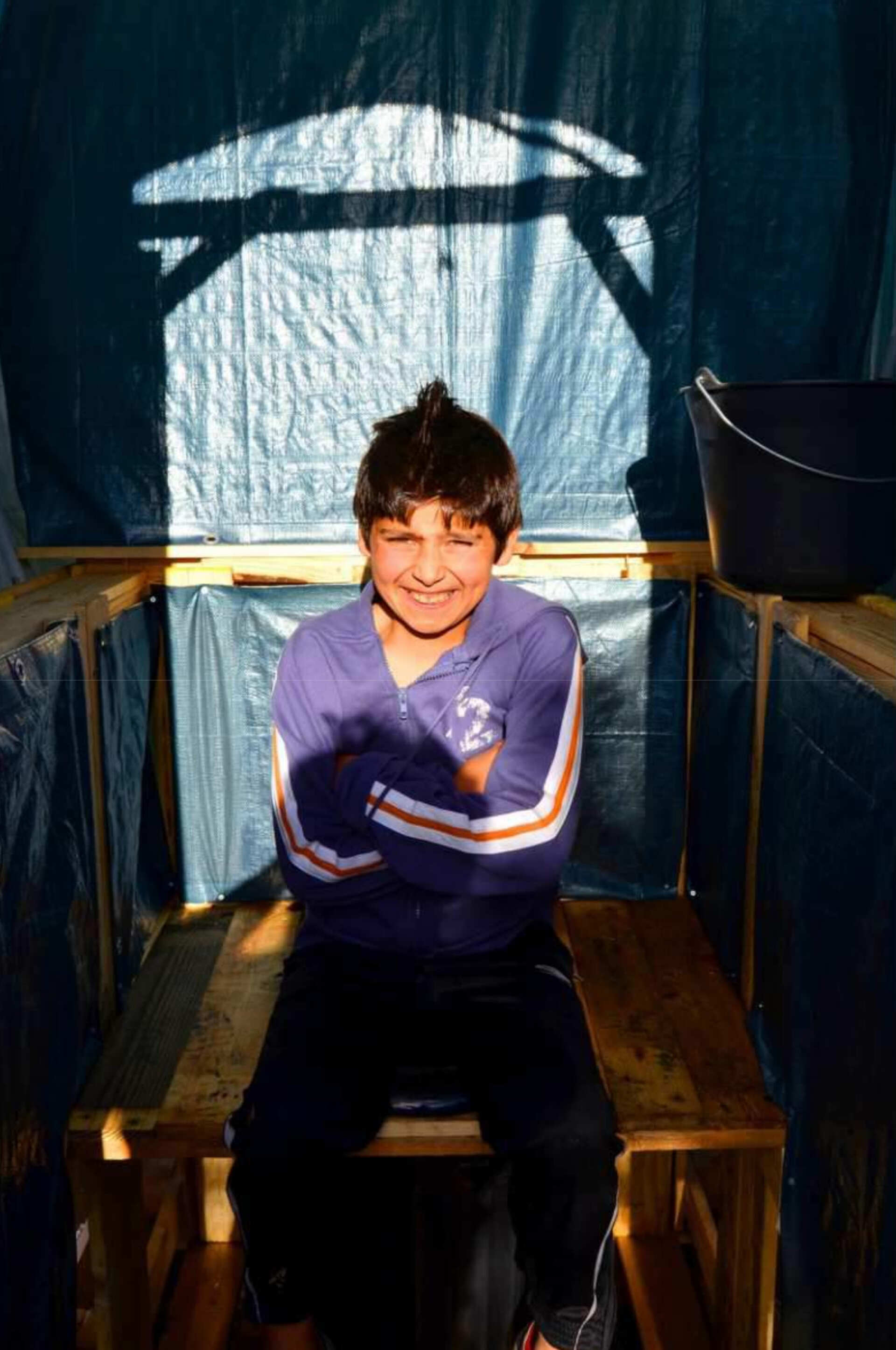 Le bois a à peine fini d'absorber l'huile de lin que les enfants étrennent les sièges. Le brasero fume, les invités arrivent, nous faisons le tour des installations. Carmen, la voix off roumaine du film que nous présentons, fait l'interprète. Ioan a encore des questions quant au fonctionnement des toilettes. Nous expliquons, discutons. Christy nous abandonne pour entrer dans la tente. "Moi, je vais regarder la télévision! " Nombreux sont ceux qui entrent aussi et regardent, sous le crayon d'Onofrei, se dessiner la vie et la mort du bidonville de la Soie à Villeurbanne.