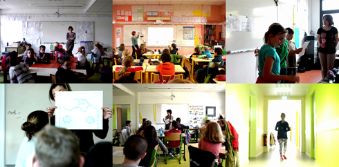 Les institutrices se sont saisies de ce projet et ont travaillé à intégrer cette notion de la mobilité dans leur enseignement. Ainsi en CP, Barbara Samuel a proposé aux enfants de réaliser un carnet de voyage pour découvrir les habitats légers et mobiles du monde entier, et précisément en arts-plastiques, les enfants devaient rendre mobile la maison qu'ils habitent. En CP-CE1, Élodie Letournel, dans un cours de mathématiques, et plus précisément de géométrie, a demandé à ces élèves de représenter un habitat léger, mobile ou éphémère en utilisant pour cela des gabarits de formes prédéfinies. En CE2, Dominique Hirschmuller a proposé à ces élèves, sur la base des formographes précédents, de réaliser des calligrammes (des poèmes dessinés), parlant également de la mobilité. En CM2, Delphine Vogin, à partir des calligrammes précédents, a proposé en cours d'anglais d'apprendre les mots de la mobilité et des différents habitats légers et mobiles et les enfants avaient pour objectifs de construire des phrases à partir de ça. Enfin, la classe de Zahia Hamza Cherif, de CE2-CM1, également à partir des formographes, a proposé un exercice de mathématiques, basé sur des calculs.