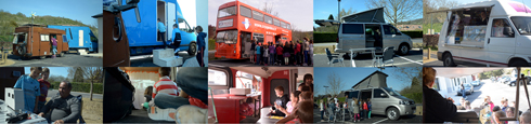 Du 13 au 15 avril, nous avons fait venir sur le parking de l'école des personnes travaillant ou vivant dans un camping-car, un camion, une camionette, un bus. Ils ont ainsi pu rencontrer et discuter avec Jean-Charles, Marie-Christine, Isabelle, Delphine et monsieur Knitter. Ils ont pu comprendre les astuces de l'énergie sans raccordement, de l'« habiter petit » et ce que vivre mobile peut signifier. Ils ont pu visiter une épicerie dans une camionnette, un restaurant dans un bus anglais, et découvrir l'ingéniosité de l'organisaiton spatiale d'un camping-car. Nous leur avons aussi présenté les débuts de films réalisés dans l'année, dans notre camion-atelier en chantier. Ils ont notamment découvert les premières images tournées avec eux, mais aussi le film de Jean-Charles et Marie-Christine, ainsi que le film fait avec Lucille, une habitante du camping de Limetz.