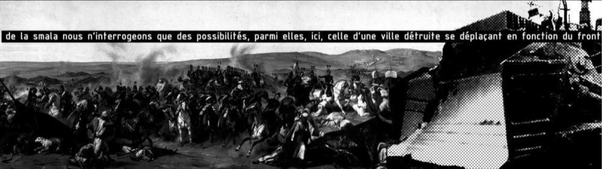 Il faut imaginer une scène de guerre, une « ville (ou un morceau de celle-ci) détruite par des hommes en uniforme ».