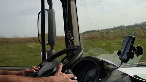 Assis à une table dehors, deux routiers discutent avec nous, un jeune et un plus âgé. Tous deux nous racontent leur vie sur les routes du monde, nous font part de l'aménagement de leur camion, etc. Le plus jeune a un nouveau camion depuis seulement trois mois et dit l'avoir déjà personnalisé avec du capitonnage au sol et sur les « murs ». « J'ai même installé une plaque de cuisson et ma bouilloire ». Le plus âgé confirme le fait qu'ils se sentent chez eux « Mais je suis chez moi... euh dans mon camion, tu vois j'y suis tellement souvent que je dis chez moi ! ». Ils sont dans leur camion du dimanche soir au samedi matin.