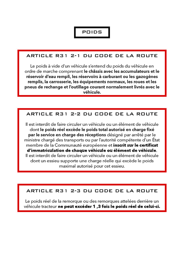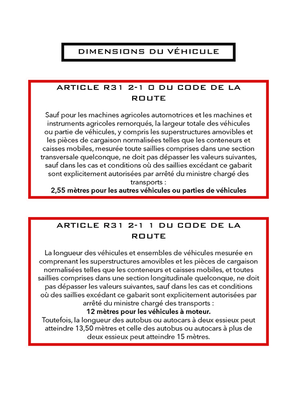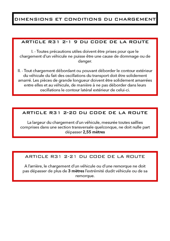 Ces limites concernent plusieurs points : les dimensions du véhicule, les dimensions et conditions du chargement et le poids.