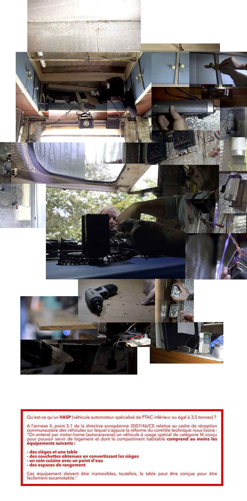 « bricolage maison ». Sous peine d'être refusés au contrôle, les véhicules ayant un aménagement de type camping-car devront donc clairement porter la mention sur le certificat d'immatriculation VASP Caravane (véhicule automobile spécifique), ce qui nécessite de valider un certain nombre de contrôles