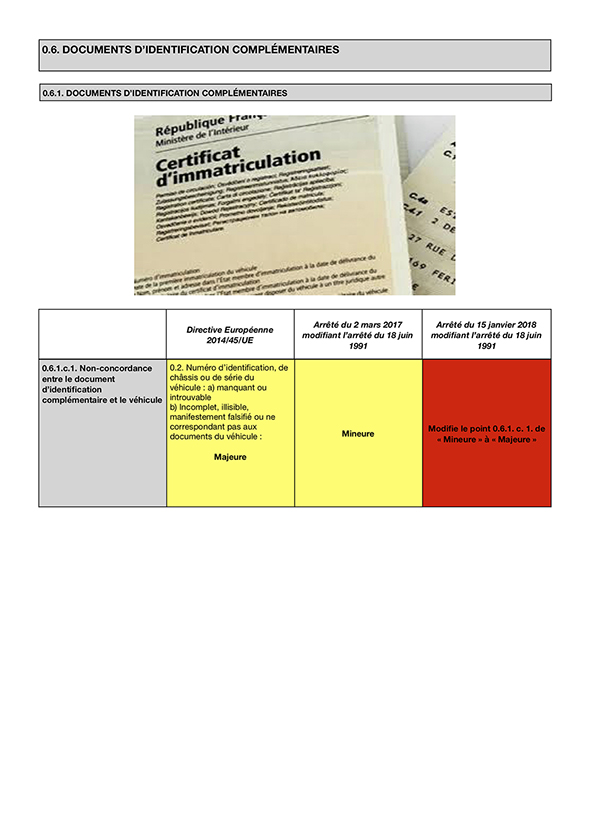 le point 0.6.1.c.1 de l'arrêté du 18 juin 19912, faisant ainsi passer la non conformité du certificat d'immatriculation avec l'usage réel du véhicule d'une défaillance mineure à