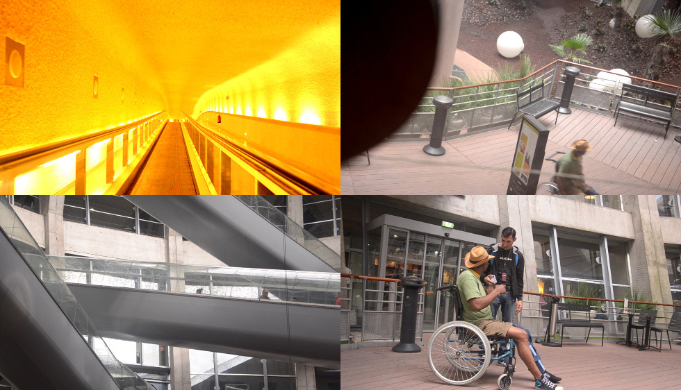 À quelques fauteuils de là, une autre femme à l'air las, son plateau à la main sur lequel roulent deux oignons. Elle le pose sur un des guéridons de la salle d'attente. Ses yeux s'embuent de larmes quand elle commence à les émincer. Le fauteuil roulant s'approche. Jambe raide sanglée dans les velcros d'une atèle bleue, T-shirt bleu vert qui raconte quelque chose en hébreux, chapeau de cow-boy en paille sur tête d'Indien, il lui apporte deux tomates et un saucisson. « Il faudra couper ça aussi. Petit petit petit ! - Ouai ouai... » La découpe terminée il repart avec le plateau rejoindre les tables de derrière. Ils sont quatre, tablettes à la main ou casques sur les oreilles. L'illusion est parfaite, il faut tendre l'oreille ou découvrir sur les chariots à bagage les cartons de sandwichs récupérés après date de péremption à la sortie des distributeurs, pour se rendre compte qu'ils ne sont pas des voyageurs mais des habitants du terminal. « Ça ça coûte 15 normalement ! - Mais c'est la montre ça ? - Non, le boîtier ! Sinon je ne serais pas là ! - Mais t'as pas fouillé dans la benne pour voir ? Moi je connais un type, Gare du Nord, qui en a trouvé une un jour. Lui il fait les poubelles, hé bah on l'a pas revu pendant quinze jours après ça ! Il s'est payé du bon temps ! » Le fauteuil roulant revient vers la femme. Elle part, toujours lasse. Elle ne veut pas rester. Il rit. « je vous l'avais dit, elle a son caractère ! » Lui, ça fait quinze jours qu'il est là. Depuis qu'avec sa femme à l'air las, ils ont perdu leur appartement à Paris. « La vie c'est pas toujours drôle. Ça tourne. Je suis né au Brésil mais j'ai vécu aux Pays Bas où l'anglais est la deuxième langue alors : I don't want to be shame but I want to say you what I need to said 'Can you help me ?' » L'inédite stratégie d'emboîtement de guillemets pousse au vertige. « Je suis venu à l'aéroport parce que la rue à Paris c'est dangereux. Ici il y a la sécurité, la police, etc. Ils nous tolèrent. Mais même ici il faut connaître du monde pour survivre. Pour les douches, c'est un Hollandais de la compagnie KLM qui nous file les clefs du personnel. Pendant les 3h30 de fermeture de l'aérogare, c'est un type de la sécu qui nous laisse monter dans un petit coin tranquille en haut. Là, on est un groupe de quatre ou cinq. Il y a beaucoup de SDF à l'aéroport. Mais ceux du terminal 2 et du terminal 3, on les fréquente pas. Allez...j'en connais trois quatre ou plutôt deux trois c'est tout. Allez bon voyage ! »