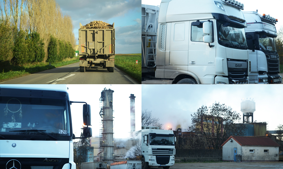 Sur la base de vie de la sucrerie Saint Louis, les odeurs de betteraves nauséabondes se mêlent au bruit de l'usine. Jean-Pierre nous rétorque : « Une base de vie ? Il n'y a personne qui vit ici... ! ». Un grand parking se déploie dans une atmosphère nébuleuse : l'usine enfumée en fond de plan, quelques poids lourds stationnés, une cabane en parpaings qui abrite les toilettes et les douches, « pour les plus courageux ! Sinon, c'est la lingette... ».