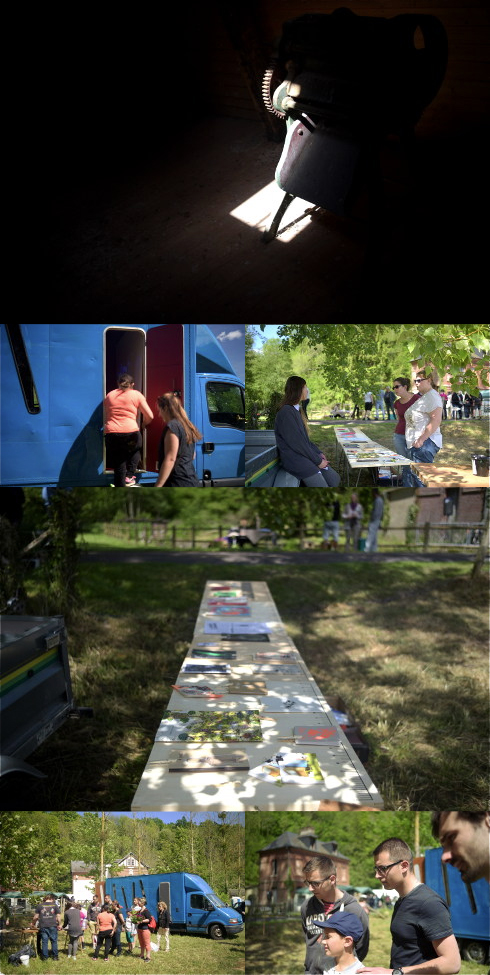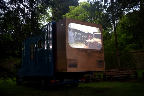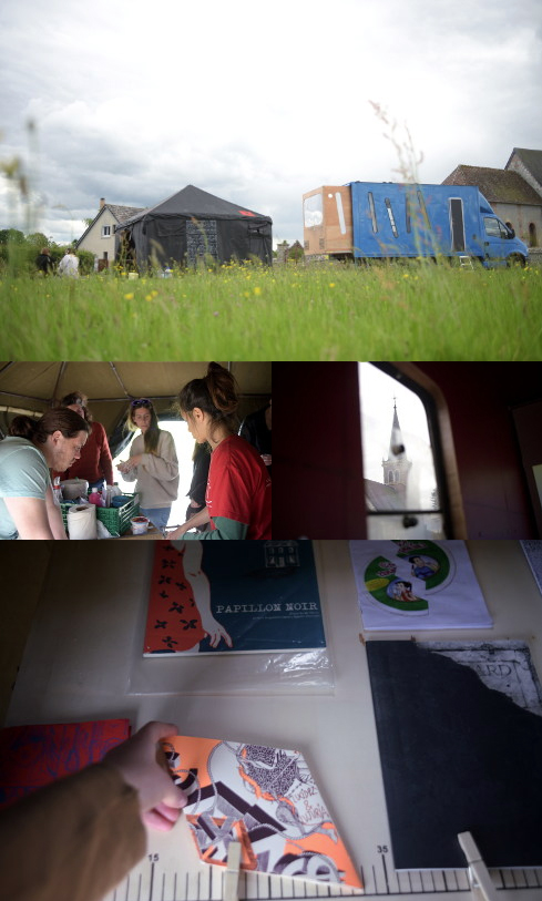 Dimanche après midi : atelier de sérigraphie et projection de films dans le MKN-VAN à l'occasion de la fête des fleurs à Livet sur Authou.