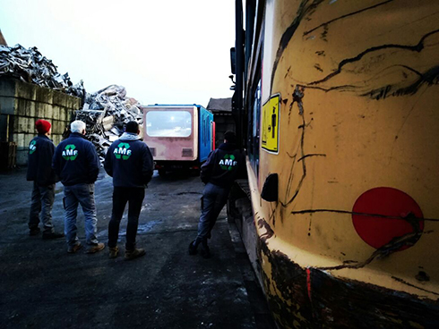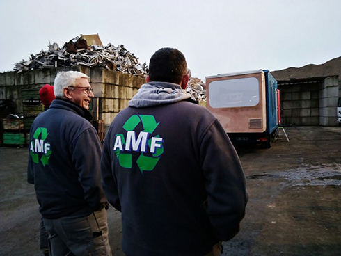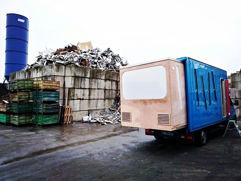 Mercredi 20 décembre, nous arrivons à l'entreprise de ferraille AMF vers 17h, heure à laquelle les travailleurs finissent leur journée et peuvent nous accorder un peu de leur temps. Loïc, l'un d'entre eux, nous indique l'endroit où garer le camion-cinéma pour projeter le film. Par chance, tous les employés sont présents pour le visionnage.
